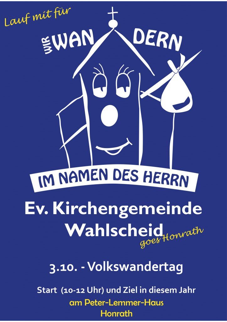 Sei dabei und hilf uns den 24er Pokal zu verteidigen! Melde dich beim Start für „Wir wandern im Namen des Herrn“ – das Team der Ev. Kirchengemeinde Wahlscheid! Wir bedanken uns schon jetzt für Deine/Eure Unterstützung!