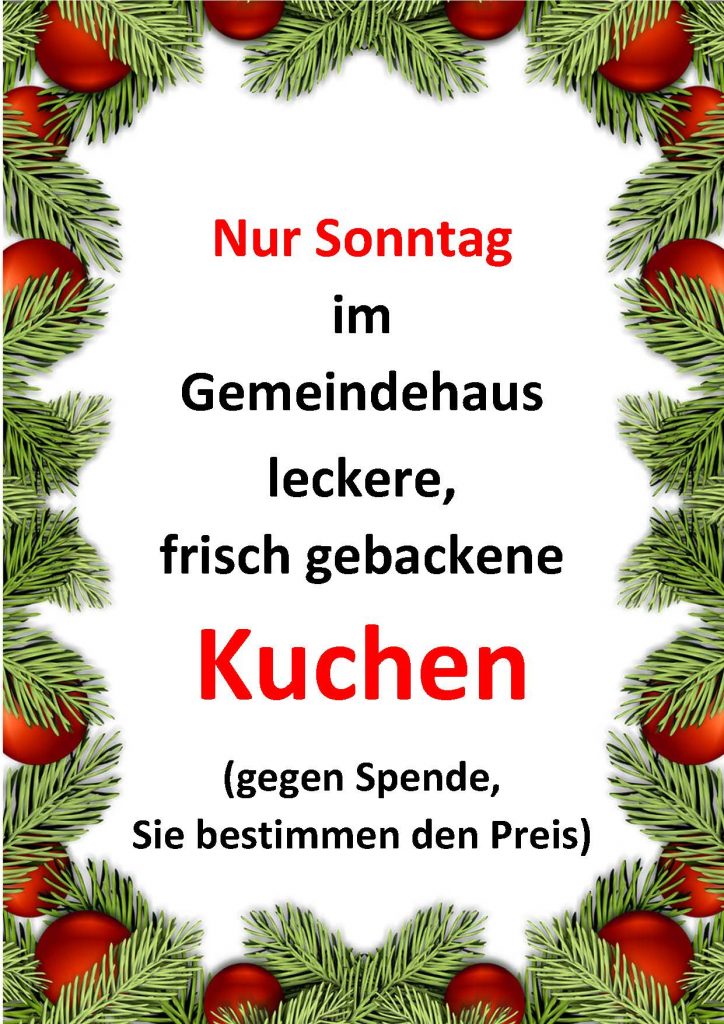 Besonders gut wurde auch wieder die sonntägliche Cafetería im Gemeindehaus angenommen – gab es dort doch eine große Auswahl an leckeren, selbstgemachten Kuchen und anderem Gebäck.