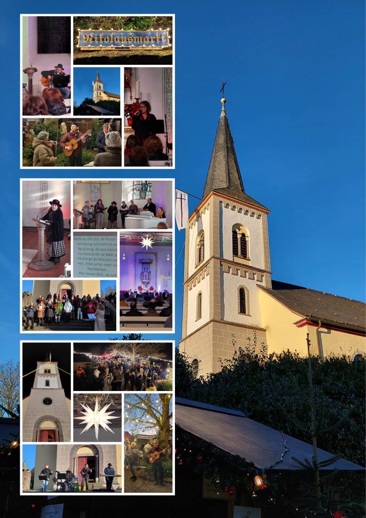 Am 1. Adventswochenende fand auch in diesem Jahr rund um die Ev. St. Bartholomäuskirche in Wahlscheid wieder der traditionelle Nikolausmarkt statt. Zum Auftakt gab es am Samstag ein Konzert der „fridayroses“. Während die Konzertbesucher*innen in der Kirche noch gespannt den von Katrin Ackermann präsentierten Liedern lauschten, füllte sich draußen schon der Kirch-Vorplatz mit den ersten Besucher*innen.
