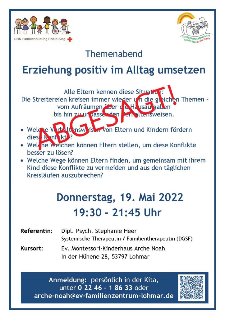 Herzliche Einladung zum Themenabend „Erziehung positiv im Alltag umsetzen“ Posted on25. April 202218. Mai 2022Autornsr